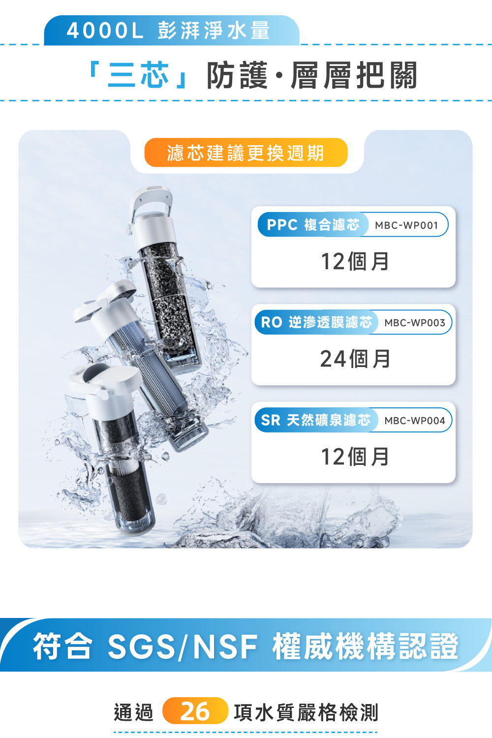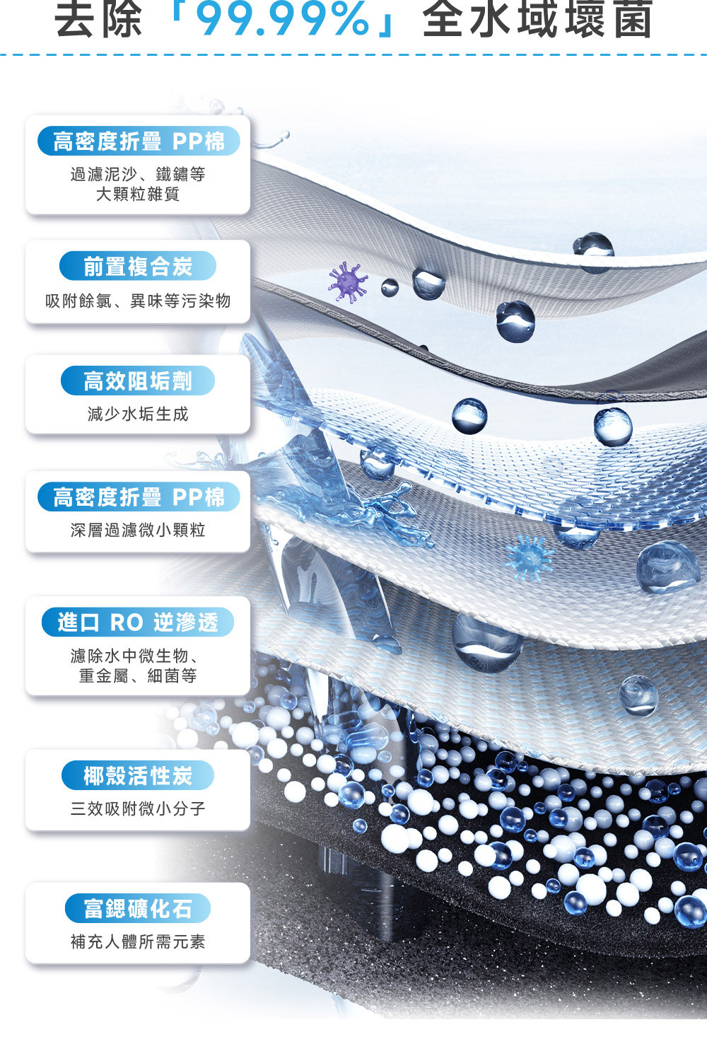 三重濾芯 × 七層過濾|有效去除 99.99% 壞菌、重金屬與雜質