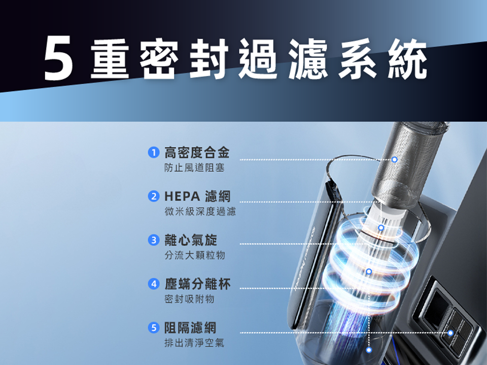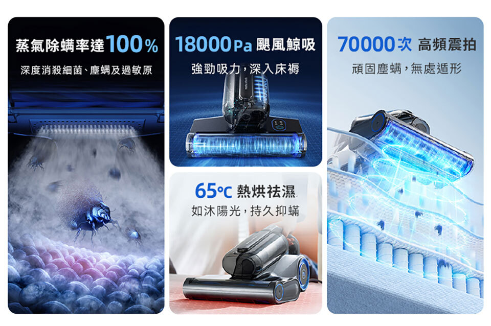 * 領先市場,強勁吸力徹底吸除塵蟎屍體、排泄物及毛髮,真正做到「一塵不染」。